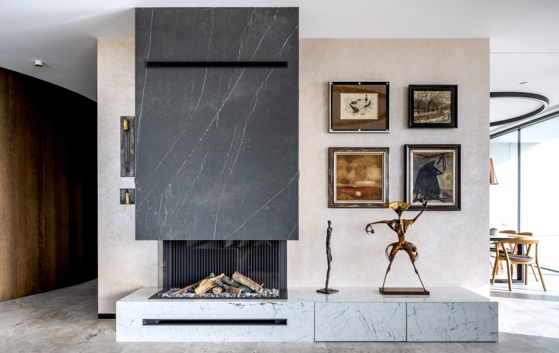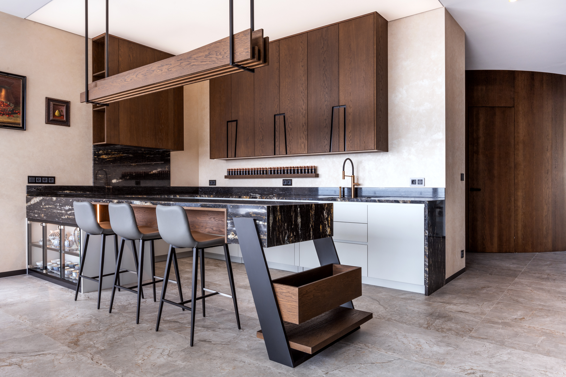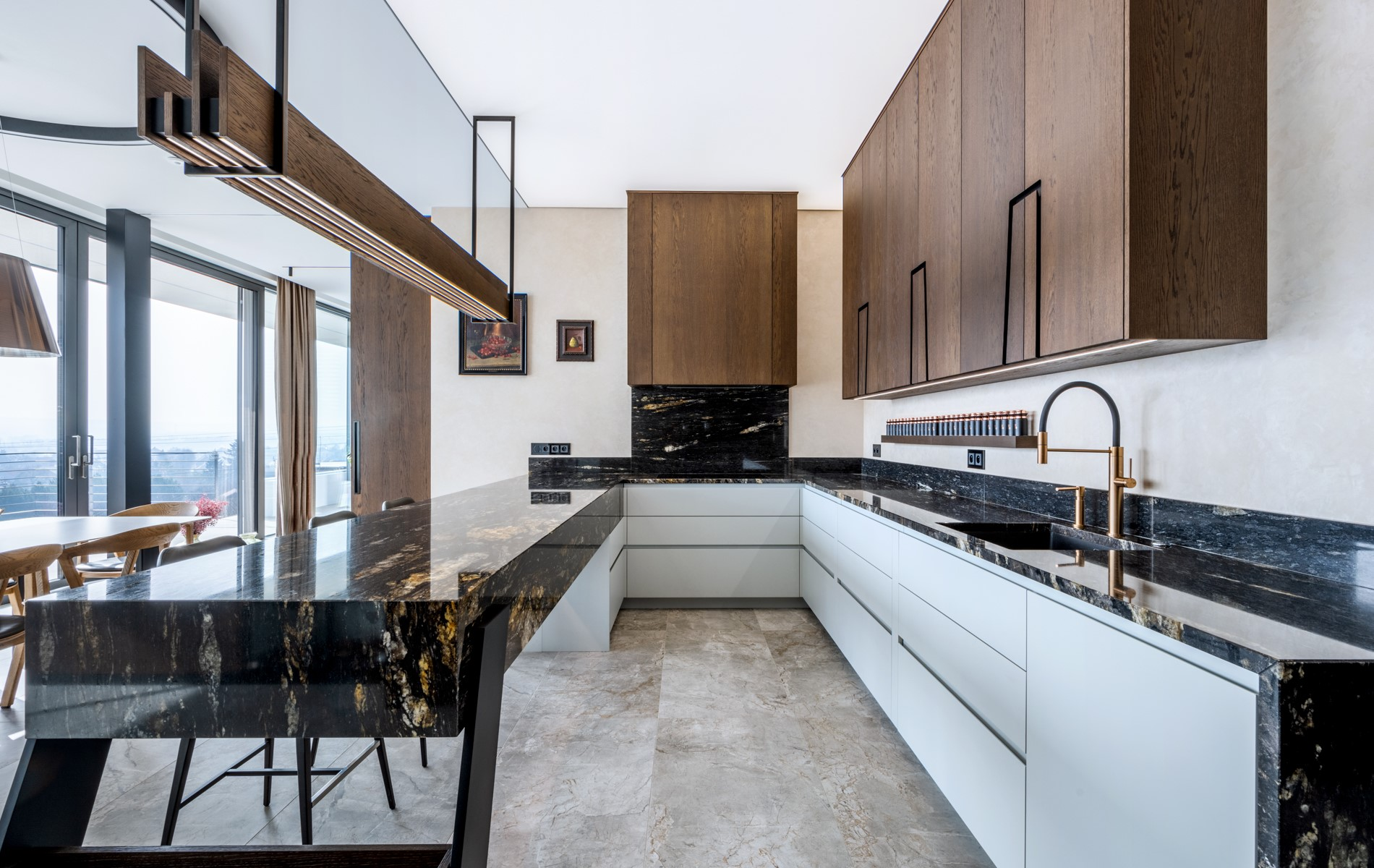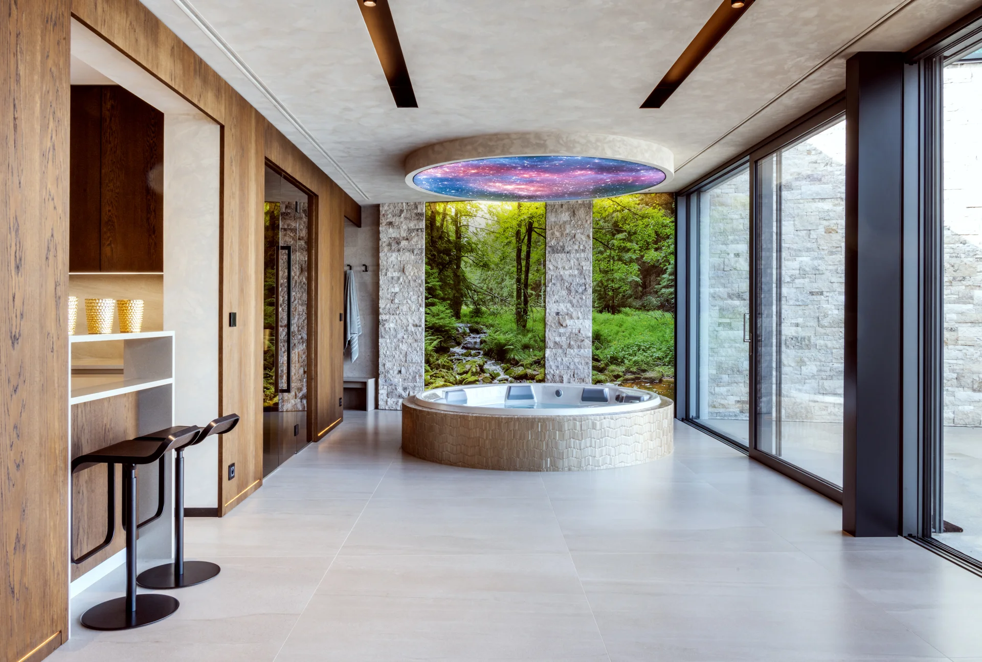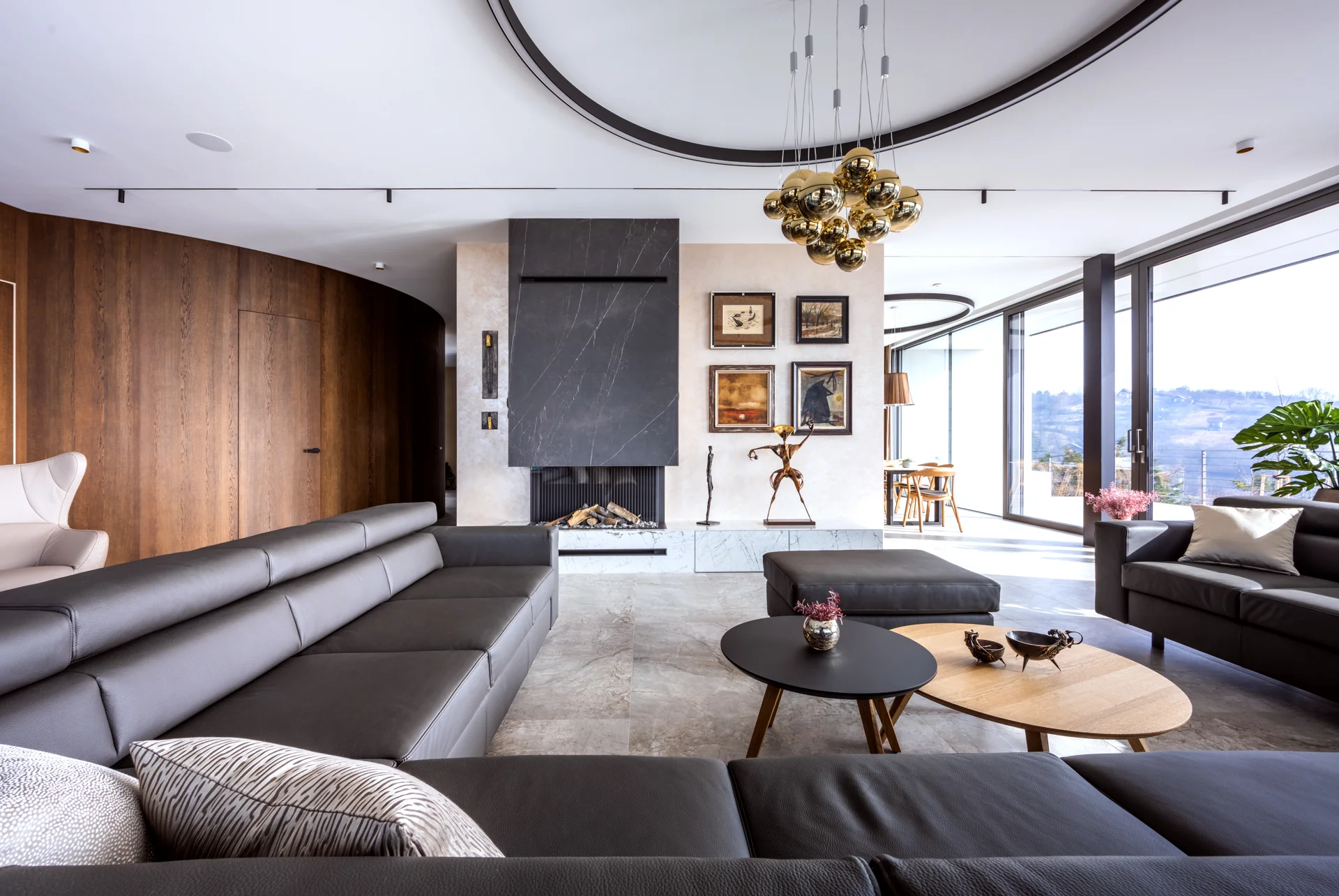 Navrhli jsme a zrealizovali prostory od kuchyně přes obývací pokoj až po domácí wellness zónu se saunou, přičemž každý detail vychází z individuálních požadavků našich klientů a odráží vysoký standard našeho interiérového studia.